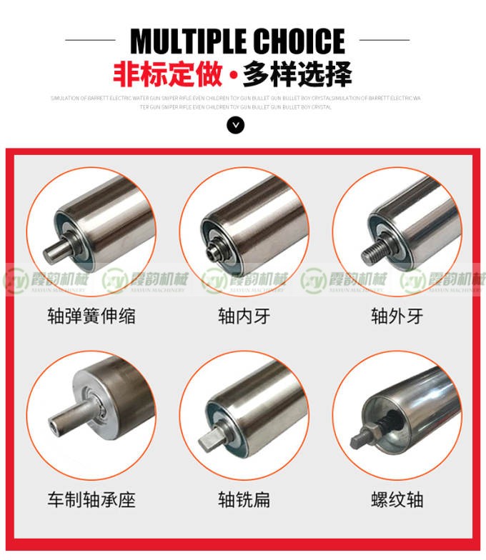 3、輥筒材質選擇:碳鋼鍍鋅、碳鋼鍍鉻、碳鋼包膠、鋁合金、不銹鋼、ABS等。
